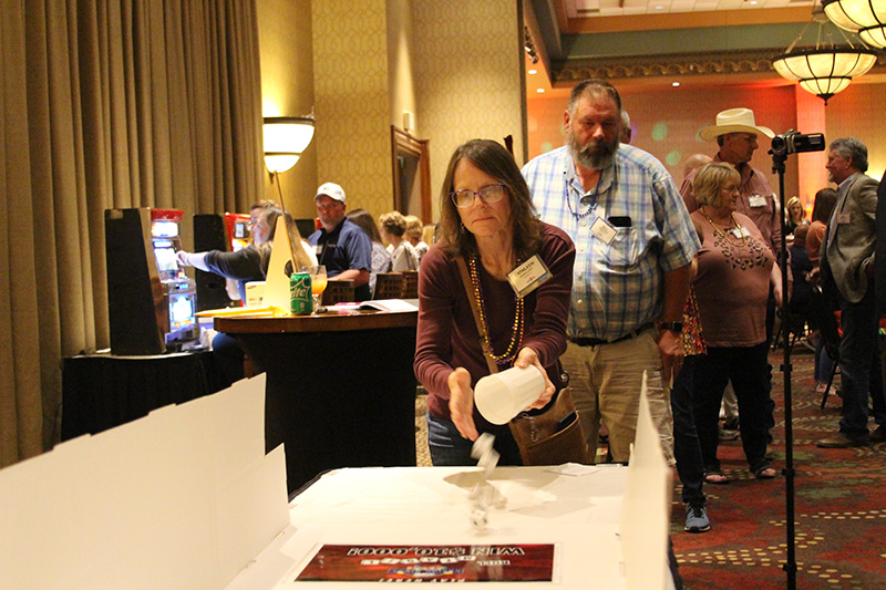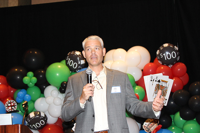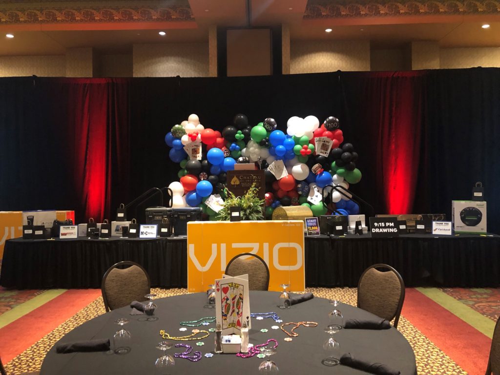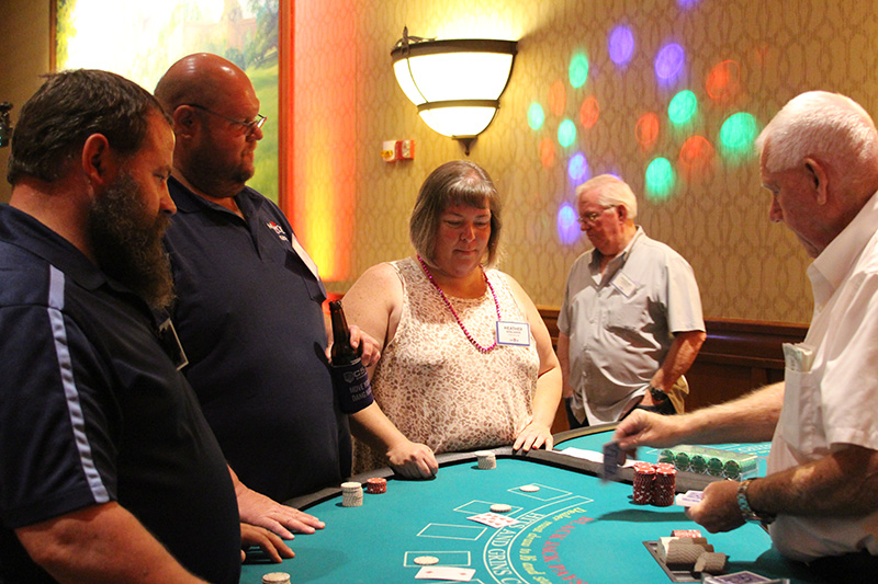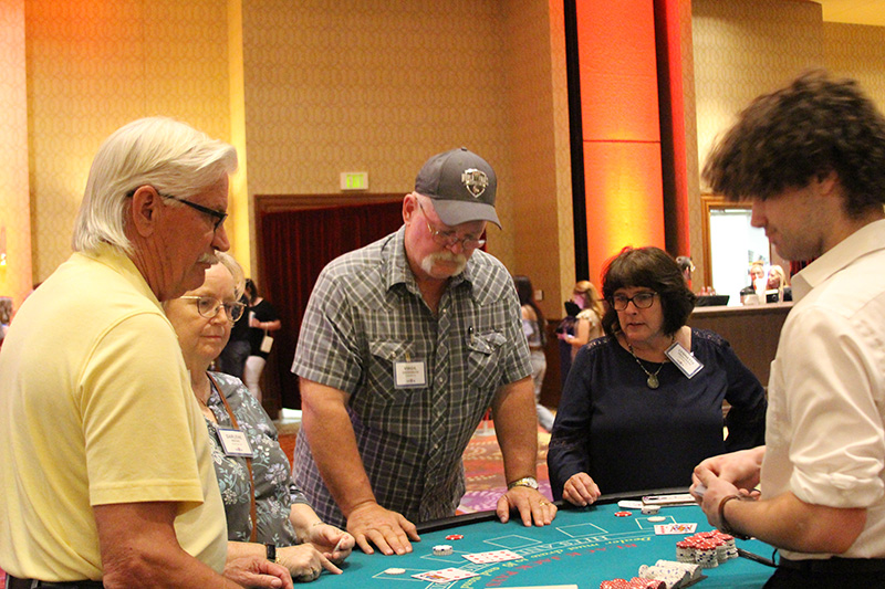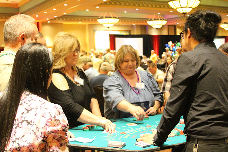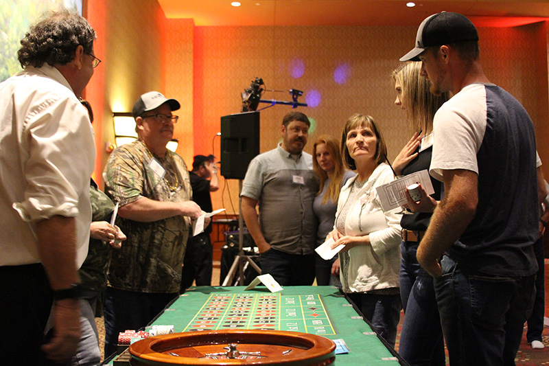 Attendees were each given $5,000 in play money to gamble on games such as craps, blackjack, roulette, slots and poker. The winnings were used to purchase raffle tickets for more than 60 prizes, which were partially paid for with vendor sponsorships. Guests also had a shot at winning $10,000 in cash by rolling six dice and spelling out “MFA OIL.”