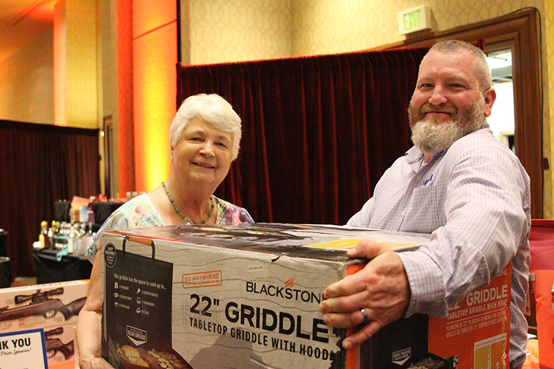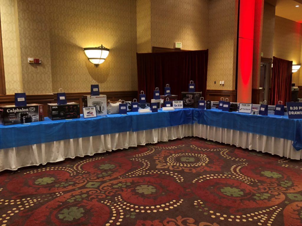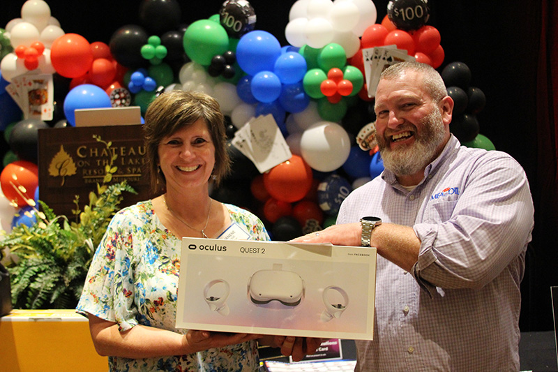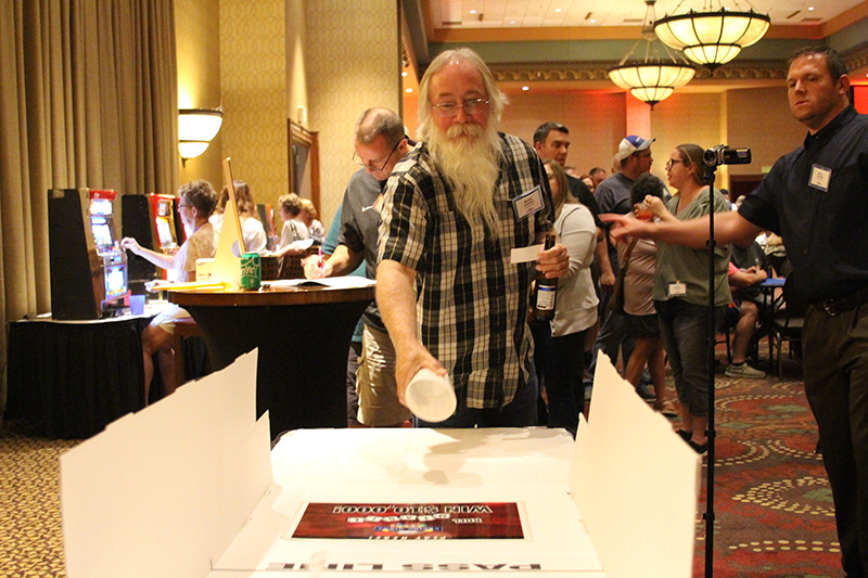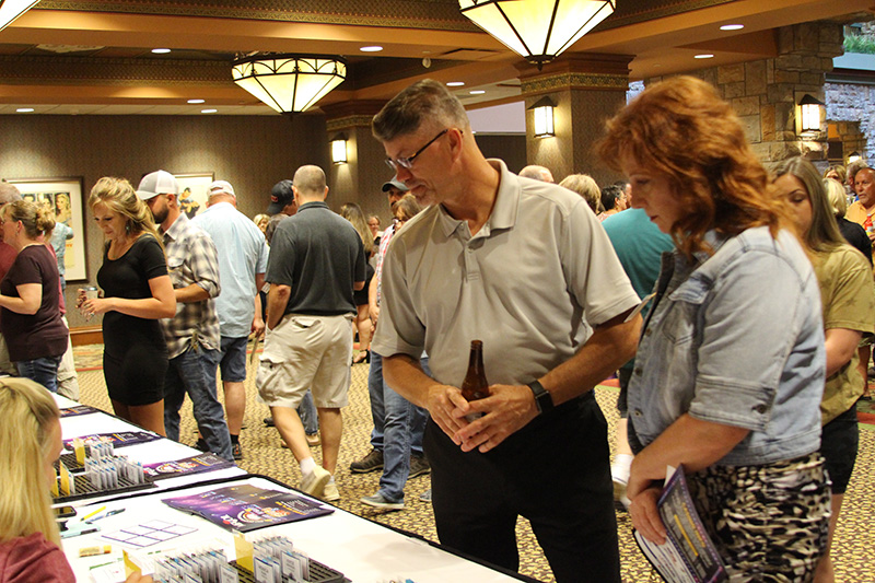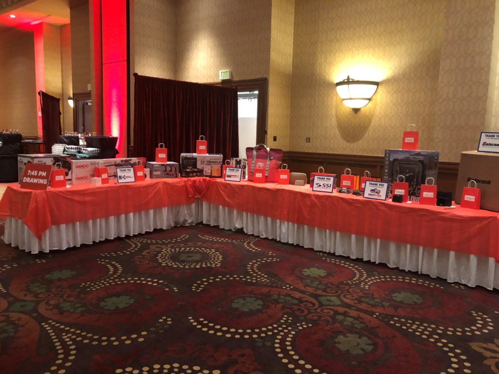 Attendees were each given $5,000 in play money to gamble on games such as craps, blackjack, roulette, slots and poker. The winnings were used to purchase raffle tickets for more than 60 prizes, which were partially paid for with vendor sponsorships. Guests also had a shot at winning $10,000 in cash by rolling six dice and spelling out “MFA OIL.”