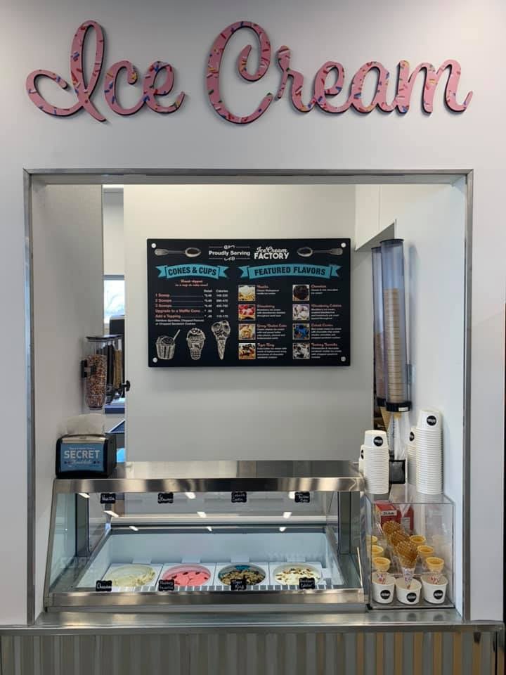 In addition to frozen treats, the store offers hot sandwiches; Hunt Brothers Pizza; Dashboard Diner products; fresh-ground, bean-to-cup coffee; and a beer cave. A drive-thru is also available for customers to order food and ice cream, along with anything else the store sells, from beer and lottery tickets to cigarettes or candy.