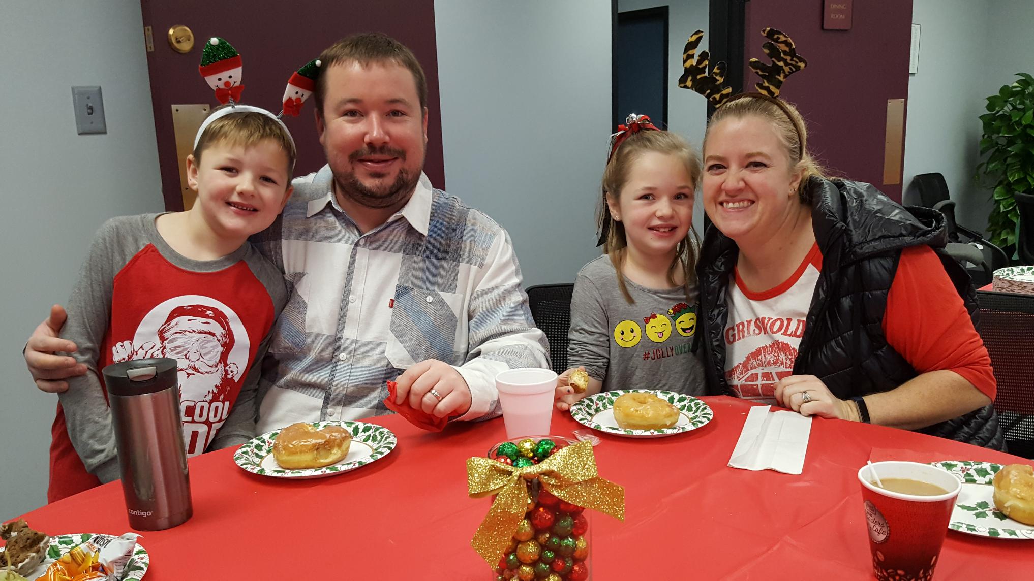 Santa Claus made a special trip from the North Pole to visit with MFA Oil, Break Time, Jiffy Lube and Big O Tires employees and their families at the annual Breakfast with Santa event at the Home Office on December 8. Nearly 120 people turned out for the opportunity to meet jolly, old St. Nicholas, including 58 children.